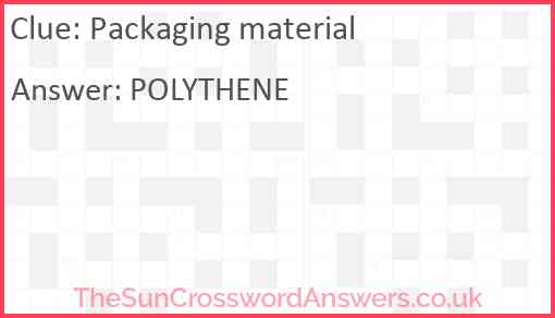 Packaging material is a crossword clue for which we have 1 possible answer and we have spotted 1 times in our database. This crossword clue was last seen on 06 May 2022 in The Sun Coffee Time Crossword puzzle!