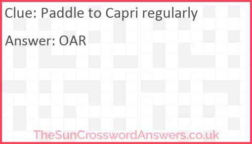 Paddle to Capri regularly is a crossword clue for which we have 1 possible answer and we have spotted 3 times in our database. This crossword clue was last seen on 31 May 2023 in The Sun Cryptic Crossword puzzle!