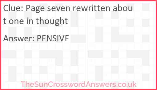 Page seven rewritten about one in thought is a crossword clue for which we have 1 possible answer and we have spotted 2 times in our database. This crossword clue was last seen on 09 January 2025 in The Sun Cryptic Crossword puzzle!