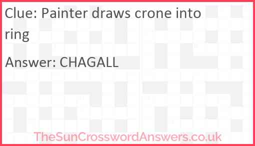 Painter draws crone into ring is a crossword clue for which we have 1 possible answer and we have spotted 1 times in our database. This crossword clue was last seen on 03 May 2021 in The Sun Cryptic Crossword puzzle!