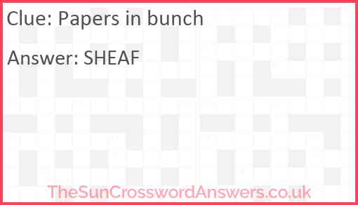 Papers in bunch is a crossword clue for which we have 1 possible answer and we have spotted 1 times in our database. This crossword clue was last seen on 08 May 2023 in The Sun Coffee Time Crossword puzzle!