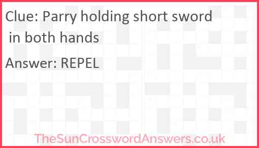 Parry holding short sword in both hands? is a crossword clue for which we have 1 possible answer and we have spotted 3 times in our database. This crossword clue was last seen on 20 May 2023 in The Sun Cryptic Crossword puzzle!