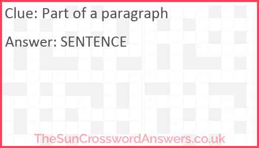 Part of a paragraph is a crossword clue for which we have 1 possible answer and we have spotted 1 times in our database. This crossword clue was last seen on 20 April 2019 in The Sun Coffee Time Crossword puzzle!