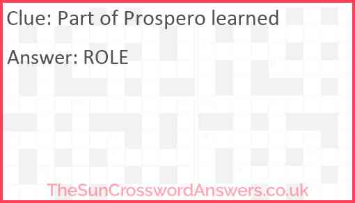 Part of Prospero learned is a crossword clue for which we have 1 possible answer and we have spotted 3 times in our database. This crossword clue was last seen on 12 June 2023 in The Sun Cryptic Crossword puzzle!