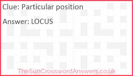 Particular position is a crossword clue for which we have 1 possible answer and we have spotted 4 times in our database. This crossword clue was last seen on 02 September 2024 in The Sun Coffee Time Crossword puzzle!