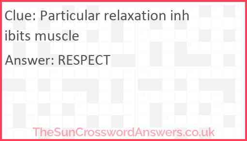 Particular relaxation inhibits muscle is a crossword clue for which we have 1 possible answer and we have spotted 2 times in our database. This crossword clue was last seen on 28 February 2023 in The Sun Cryptic Crossword puzzle!