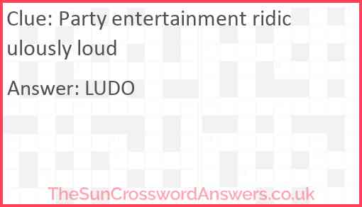 Party entertainment ridiculously loud is a crossword clue for which we have 1 possible answer and we have spotted 2 times in our database. This crossword clue was last seen on 17 January 2025 in The Sun Cryptic Crossword puzzle!