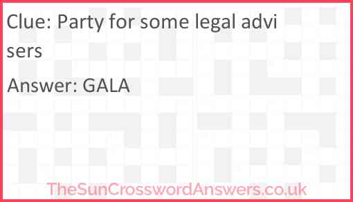 Party for some legal advisers is a crossword clue for which we have 1 possible answer and we have spotted 2 times in our database. This crossword clue was last seen on 10 March 2024 in The Sun Cryptic Crossword puzzle!