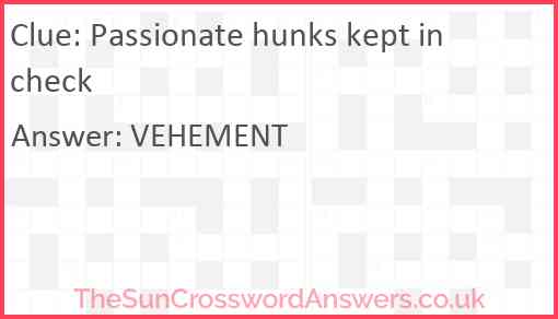 Passionate hunks kept in check is a crossword clue for which we have 1 possible answer and we have spotted 3 times in our database. This crossword clue was last seen on 20 October 2024 in The Sun Cryptic Crossword puzzle!