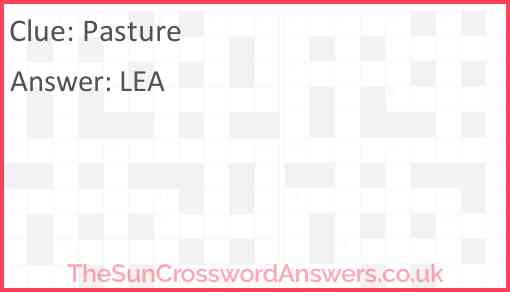 Pasture is a crossword clue for which we have 3 possible answer and we have spotted 34 times in our database. This crossword clue was last seen on 20 October 2024 in The Sun Coffee Time Crossword puzzle!