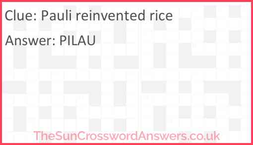 Pauli reinvented rice is a crossword clue for which we have 1 possible answer and we have spotted 2 times in our database. This crossword clue was last seen on 21 June 2022 in The Sun Cryptic Crossword puzzle!
