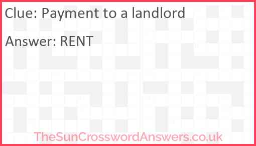 Payment to a landlord is a crossword clue for which we have 1 possible answer and we have spotted 2 times in our database. This crossword clue was last seen on 11 June 2019 in The Sun Coffee Time Crossword puzzle!