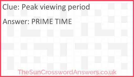 Peak viewing period is a crossword clue for which we have 2 possible answer and we have spotted 2 times in our database. This crossword clue was last seen on 14 March 2024 in The Sun Coffee Time Crossword puzzle!