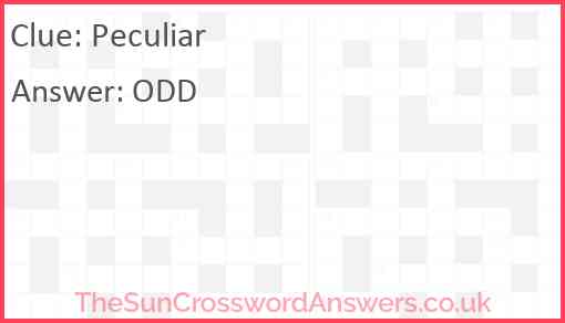 Peculiar is a crossword clue for which we have 2 possible answer and we have spotted 11 times in our database. This crossword clue was last seen on 10 July 2025 in The Sun Coffee Time Crossword puzzle!