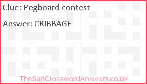 Pegboard contest is a crossword clue for which we have 1 possible answer and we have spotted 2 times in our database. This crossword clue was last seen on 03 March 2024 in The Sun Coffee Time Crossword puzzle!