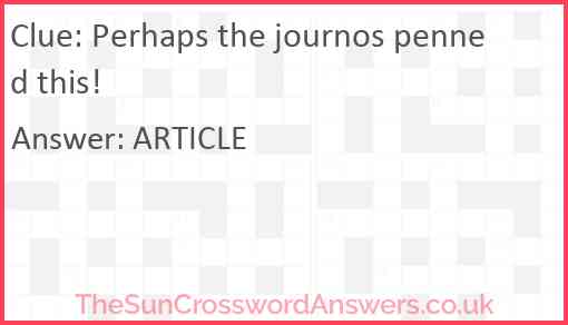 Perhaps the journos penned this! is a crossword clue for which we have 1 possible answer and we have spotted 2 times in our database. This crossword clue was last seen on 31 March 2024 in The Sun Cryptic Crossword puzzle!