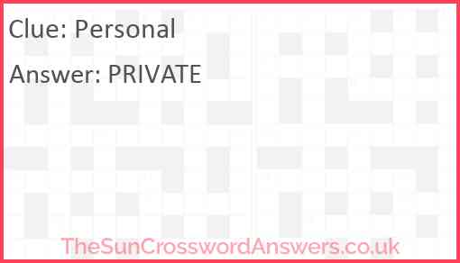Personal is a crossword clue for which we have 1 possible answer and we have spotted 4 times in our database. This crossword clue was last seen on 14 July 2024 in The Sun Coffee Time Crossword puzzle!
