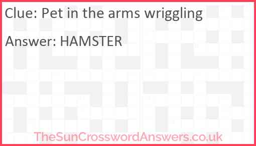 Pet in the arms wriggling is a crossword clue for which we have 1 possible answer and we have spotted 2 times in our database. This crossword clue was last seen on 08 July 2024 in The Sun Cryptic Crossword puzzle!