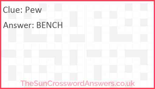 Pew is a crossword clue for which we have 1 possible answer and we have spotted 3 times in our database. This crossword clue was last seen on 23 July 2024 in The Sun Coffee Time Crossword puzzle!