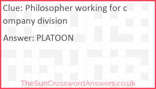 Philosopher working for company division is a crossword clue for which we have 1 possible answer and we have spotted 2 times in our database. This crossword clue was last seen on 10 February 2025 in The Sun Cryptic Crossword puzzle!