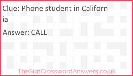 Phone student in California is a crossword clue for which we have 1 possible answer and we have spotted 2 times in our database. This crossword clue was last seen on 21 May 2025 in The Sun Cryptic Crossword puzzle!
