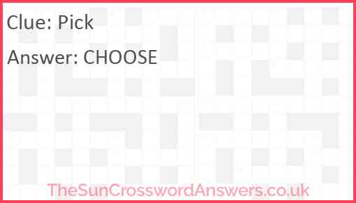 Pick is a crossword clue for which we have 1 possible answer and we have spotted 4 times in our database. This crossword clue was last seen on 29 September 2023 in The Sun Coffee Time Crossword puzzle!