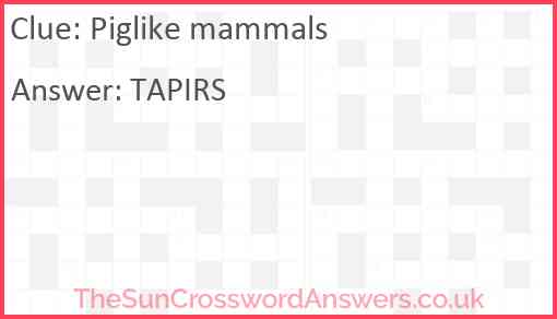 Piglike mammals is a crossword clue for which we have 1 possible answer and we have spotted 1 times in our database. This crossword clue was last seen on 21 April 2024 in The Sun Coffee Time Crossword puzzle!