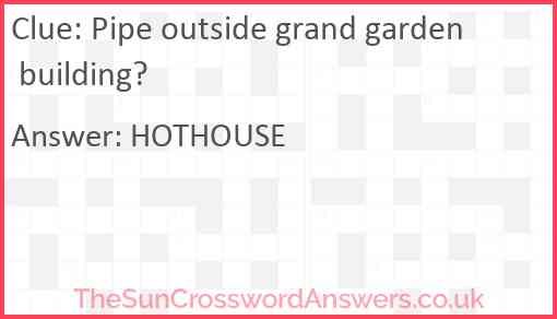 Pipe outside grand garden building? is a crossword clue for which we have 1 possible answer and we have spotted 1 times in our database. This crossword clue was last seen on 08 July 2022 in The Sun Cryptic Crossword puzzle!