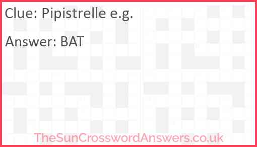Pipistrelle e.g. is a crossword clue for which we have 1 possible answer and we have spotted 11 times in our database. This crossword clue was last seen on 09 May 2025 in The Sun Coffee Time Crossword puzzle!