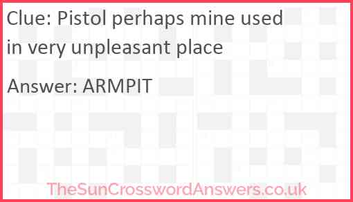 Pistol perhaps mine used in very unpleasant place is a crossword clue for which we have 1 possible answer and we have spotted 1 times in our database. This crossword clue was last seen on 23 January 2025 in The Sun Cryptic Crossword puzzle!