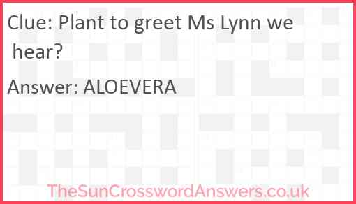 Plant to greet Ms Lynn we hear? is a crossword clue for which we have 1 possible answer and we have spotted 1 times in our database. This crossword clue was last seen on 07 July 2023 in The Sun Cryptic Crossword puzzle!