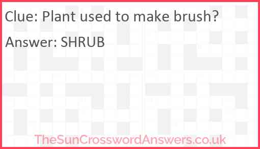 Plant used to make brush? is a crossword clue for which we have 1 possible answer and we have spotted 3 times in our database. This crossword clue was last seen on 03 March 2025 in The Sun Cryptic Crossword puzzle!