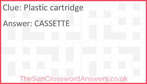 Plastic cartridge is a crossword clue for which we have 1 possible answer and we have spotted 3 times in our database. This crossword clue was last seen on 12 July 2025 in The Sun Coffee Time Crossword puzzle!