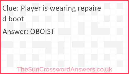Player is wearing repaired boot is a crossword clue for which we have 1 possible answer and we have spotted 1 times in our database. This crossword clue was last seen on 07 August 2021 in The Sun Cryptic Crossword puzzle!