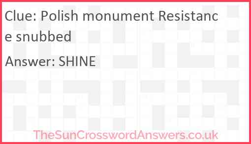 Polish monument Resistance snubbed is a crossword clue for which we have 1 possible answer and we have spotted 1 times in our database. This crossword clue was last seen on 03 July 2024 in The Sun Cryptic Crossword puzzle!