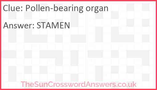 Pollen-bearing organ is a crossword clue for which we have 1 possible answer and we have spotted 4 times in our database. This crossword clue was last seen on 02 November 2024 in The Sun Coffee Time Crossword puzzle!