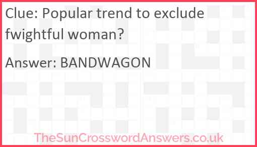 Popular trend to exclude fwightful woman? is a crossword clue for which we have 1 possible answer and we have spotted 2 times in our database. This crossword clue was last seen on 14 March 2024 in The Sun Cryptic Crossword puzzle!