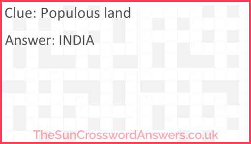 Populous land is a crossword clue for which we have 1 possible answer and we have spotted 13 times in our database. This crossword clue was last seen on 19 February 2025 in The Sun Coffee Time Crossword puzzle!