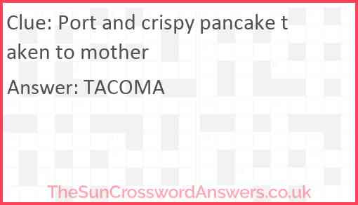 Port and crispy pancake taken to mother is a crossword clue for which we have 1 possible answer and we have spotted 1 times in our database. This crossword clue was last seen on 10 September 2022 in The Sun Cryptic Crossword puzzle!