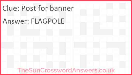 Post for banner is a crossword clue for which we have 1 possible answer and we have spotted 3 times in our database. This crossword clue was last seen on 23 February 2025 in The Sun Coffee Time Crossword puzzle!