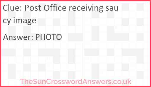 Post Office receiving saucy image is a crossword clue for which we have 1 possible answer and we have spotted 3 times in our database. This crossword clue was last seen on 29 November 2020 in The Sun Cryptic Crossword puzzle!