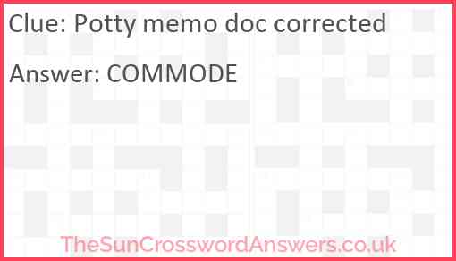 Potty memo doc corrected is a crossword clue for which we have 1 possible answer and we have spotted 2 times in our database. This crossword clue was last seen on 03 April 2025 in The Sun Cryptic Crossword puzzle!