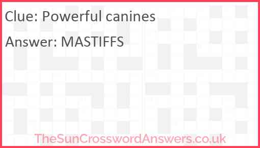 Powerful canines is a crossword clue for which we have 1 possible answer and we have spotted 1 times in our database. This crossword clue was last seen on 25 August 2023 in The Sun Coffee Time Crossword puzzle!