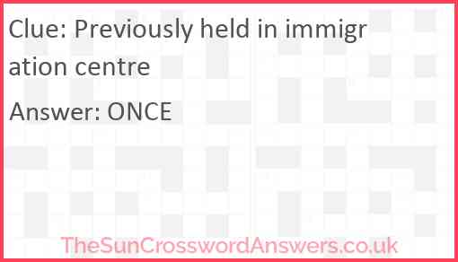 Previously held in immigration centre is a crossword clue for which we have 1 possible answer and we have spotted 2 times in our database. This crossword clue was last seen on 13 January 2023 in The Sun Cryptic Crossword puzzle!