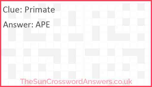 Primate is a crossword clue for which we have 3 possible answer and we have spotted 12 times in our database. This crossword clue was last seen on 29 November 2024 in The Sun Coffee Time Crossword puzzle!