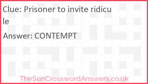 Prisoner to invite ridicule is a crossword clue for which we have 1 possible answer and we have spotted 3 times in our database. This crossword clue was last seen on 16 June 2023 in The Sun Cryptic Crossword puzzle!