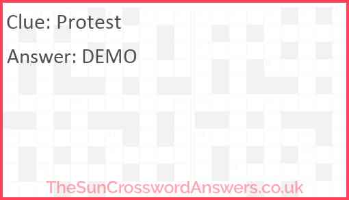 Protest is a crossword clue for which we have 1 possible answer and we have spotted 1 times in our database. This crossword clue was last seen on 20 January 2023 in The Sun Coffee Time Crossword puzzle!