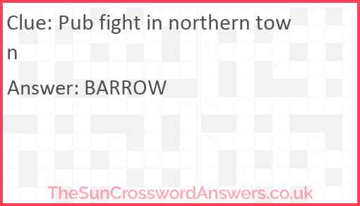 Pub fight in northern town is a crossword clue for which we have 1 possible answer and we have spotted 3 times in our database. This crossword clue was last seen on 21 January 2025 in The Sun Cryptic Crossword puzzle!