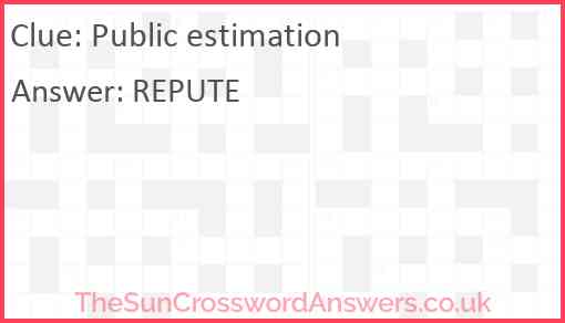 Public estimation is a crossword clue for which we have 1 possible answer and we have spotted 1 times in our database. This crossword clue was last seen on 27 April 2019 in The Sun Coffee Time Crossword puzzle!