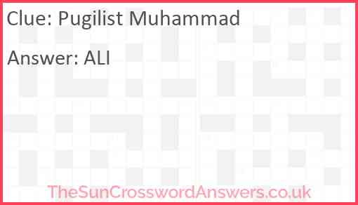 Pugilist Muhammad is a crossword clue for which we have 1 possible answer and we have spotted 7 times in our database. This crossword clue was last seen on 14 April 2024 in The Sun Coffee Time Crossword puzzle!